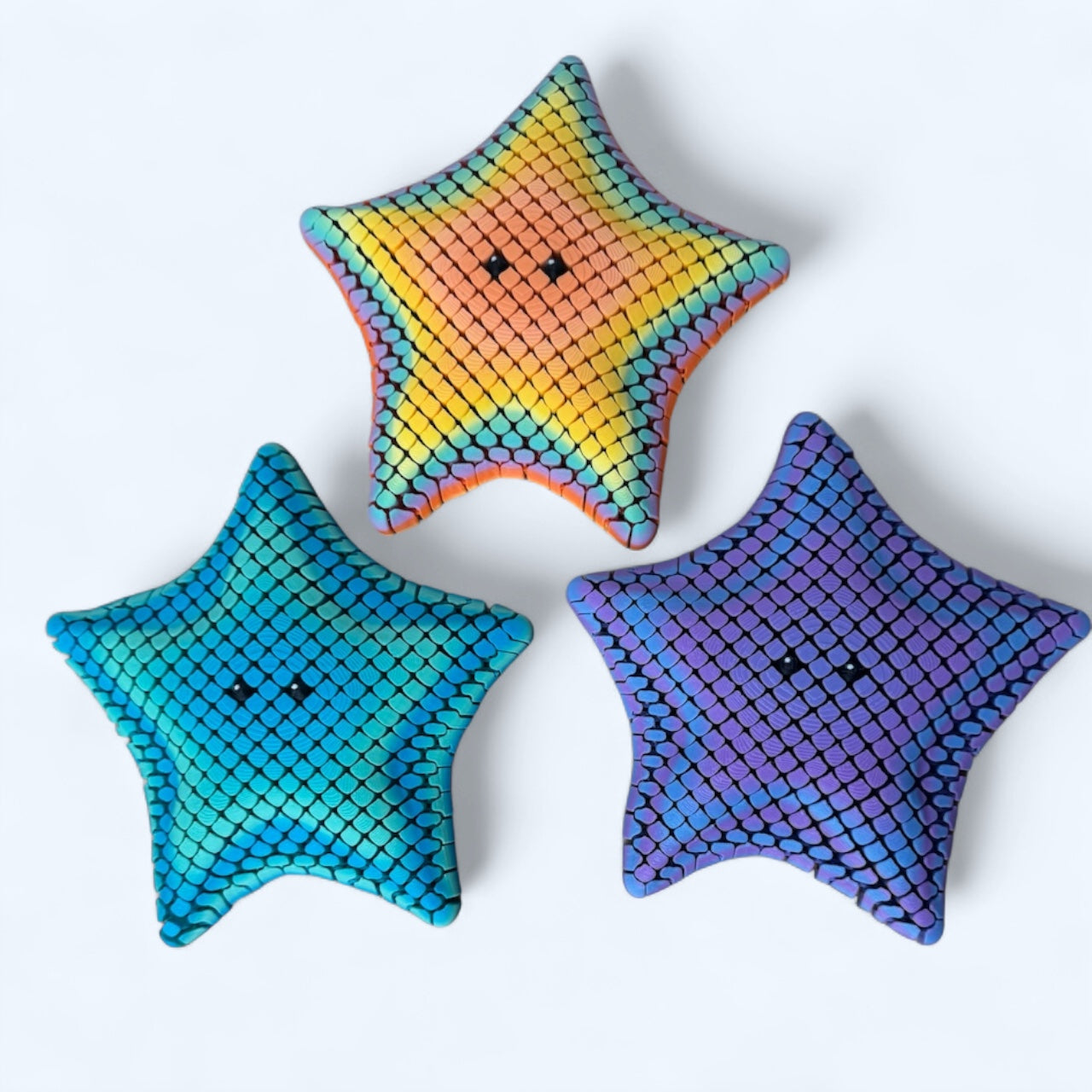 This twisty, clicky sea buddy is full of charm and ready to tag along anywhere you go. Starlo’s flexible mesh limbs are made for endless posing, fidgeting, and gentle wiggling. Whether he's hanging from your bag or chilling on your desk. Cute, compact, and totally irresistible, Starlo brings splashy vibes and calming play wherever the tide takes you. Just don’t toss him in the ocean, he’s strictly for land