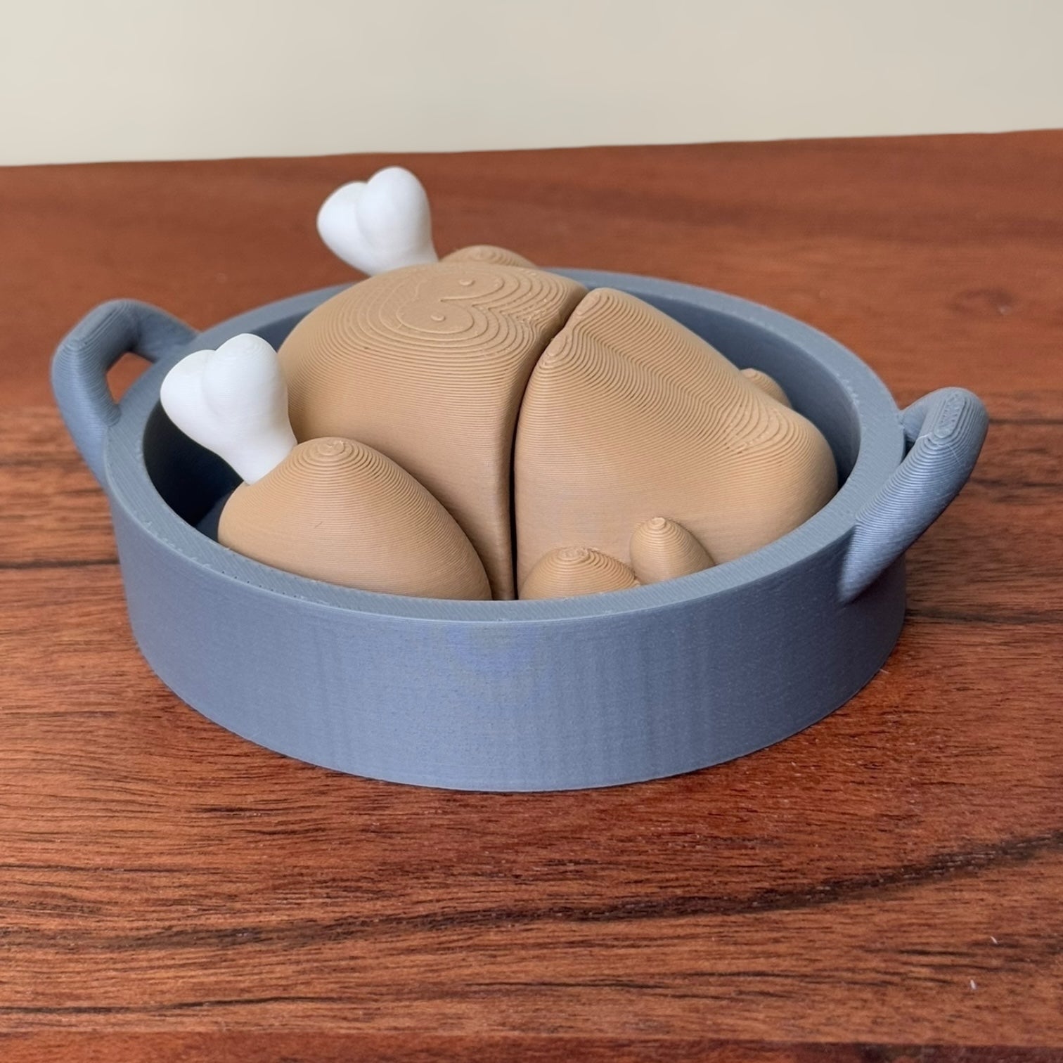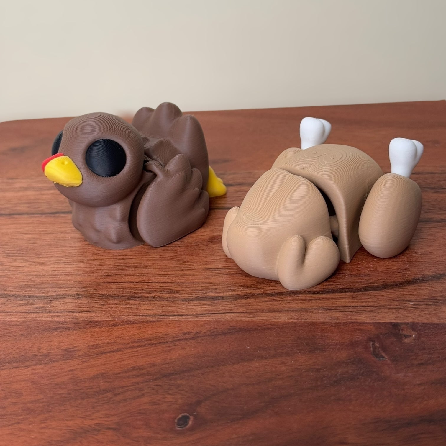 Bring a gobble of joy to your collection with our Turkey in Roasting Pan characters! These 3D-printed, adorably quirky turkeys come in two delightful versions: